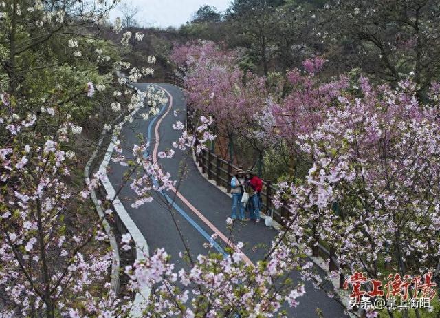 连日来,从蒸湘区雨母山十里荷塘往上的休闲步道旁,或粉或红的樱花缀满树枝,引得不少市民前来观赏游览。